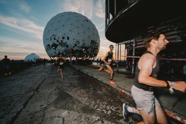 Über 20 Crews aus aller Welt traten an, um eine Meile bergauf durch den Wald zu laufen, bis hinauf zur ehemaligen Abhörstation auf dem Teufelsberg, wo die Ziellinie mit einem spektakulären Blick über Berlin wartete.