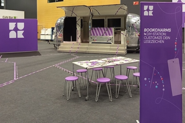 Im Mittelpunkt stand ein aufmerksamkeitsstarker Airstream, der als eindrucksvolles Centerpiece diente und mehrere interaktive Elemente vereinte: Neben einem funk Quiz und einer Fotostation mit individuellem Book Pitch konnten Besucher*innen direkt vor Ort persönliche Lesezeichen gestalten.