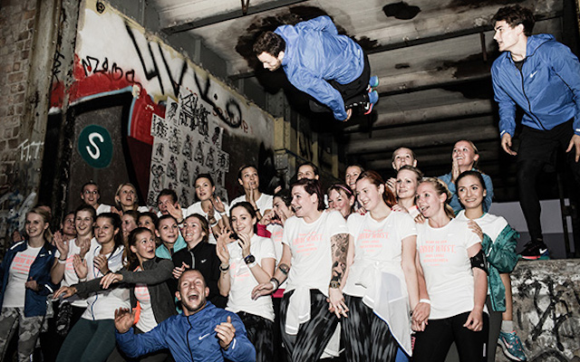 Im Rahmen der CHASING HIGHS Kampagne veranstaltete Nike unter dem Motto "Wage den Sprung ohne lange nachzudenken" einen 7Km Run, der entlang der Strecke mit verschieden Highlights entsprechend dem Motto bestückt war.