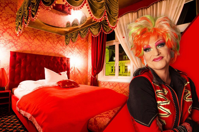 Die Gastegeberin, Dragqueen Olivia Jones, ließ es sich nicht nehmen und servierte den Gästen persönlich Champagner aufs Zimmer.