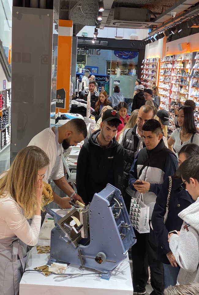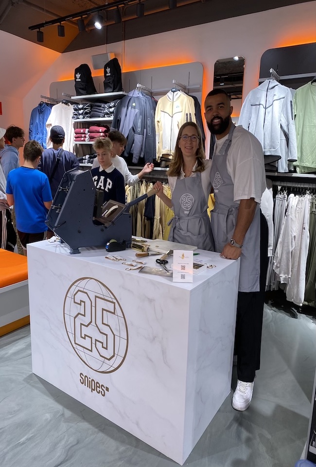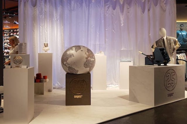 Passend zum edlen Look der Produkte verwandelten wir Storeabschnitte in kleine Museumsflächen, um die hochwertigen Teile angemessen zu präsentieren. In den größten Snipes Filialen Mailand, Paris, Berlin und Barcelona konnte sich die Kundschaft am Tag des Jubiläums, dem 4. April kostenlos zur Kollektion passende Schlüsselanhänger personalisieren lassen. Außerdem hatten BesucherInnen des Flagshipstore in Köln zusätzlich die Möglichkeit einen live vor Ort getuffteten Teppich zu gewinnen.