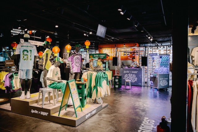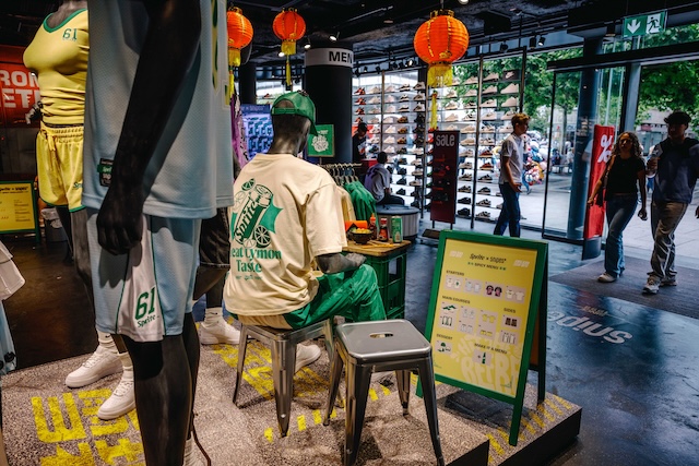 Im Rahmen des Launches der Snipes x Sprite Kollektion wurden aufmerksamkeitsstarke Mannequin Islands im Kampagnen-Stil umgesetzt und in den Stores inszeniert. Ergänzend dazu realisierten wir eine europaweite Roadshow, inspiriert vom Frauenfeld Festival.