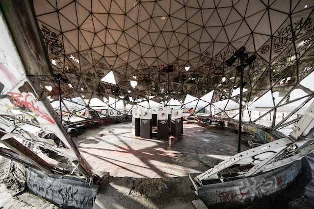 Hierfür haben wir eine besonders wetterexponierte Location nämlich die ehemalige Abhörstation auf dem Berliner Teufelsberg ausgewählt und die Schuhe dort, immer mit dem Thema Wetter im Hinterkopf, inszeniert.