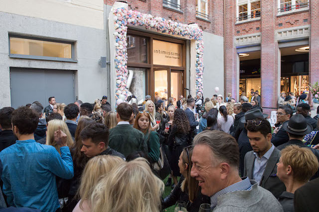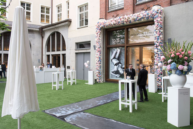 Der Innenhof der Hofstatt München diente hierfür als optimale Eventfläche. Nicht nur der graue Betonboden wurde mit grünem Kunstrasen ausgelegt, sondern der gesamte Innenhof in ein Meer aus Blüten getaucht. Als kleines Highlight platzierten wir um den Store-Eingang herum ein 5m x 3m großes Blumentor aus echten Blüten.