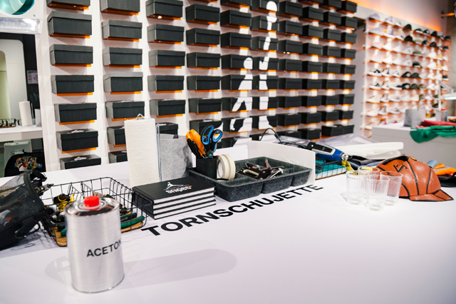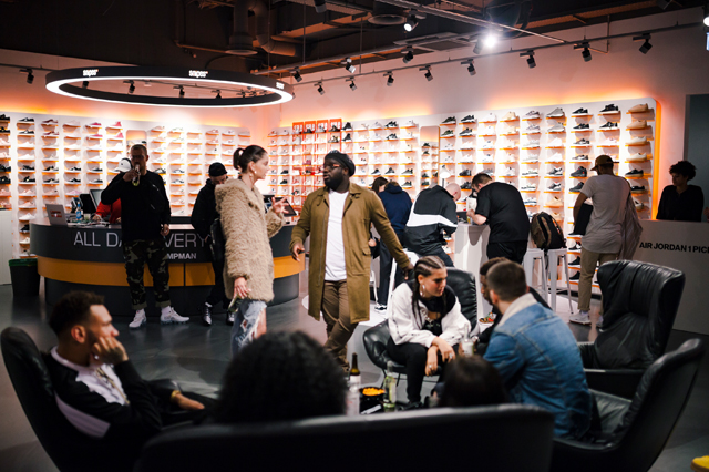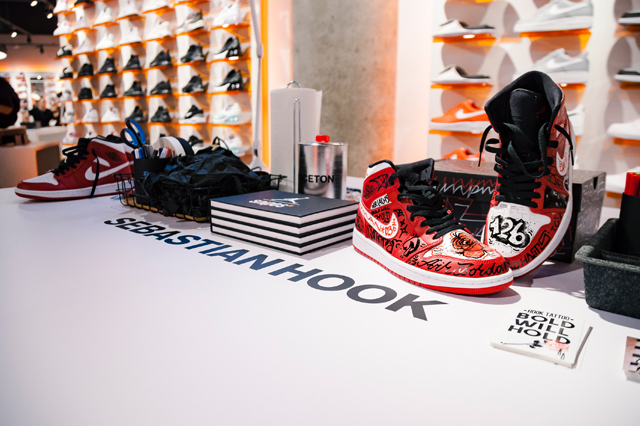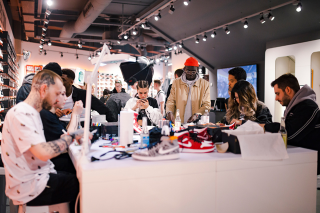 30 geladene Gäste bekamen die Möglichkeit zusammen mit SNIPES, dem Sneakers Magazine und vier Custom-Künstlern ihren eigenen, einzigartigen Air Jordan 1 Mid zu gestalten. Nachdem die Gäste ihren Jordan 1 an der AJ1 Pick-Up Station ausgehändigt bekommen haben, gab es an 4 Stationen neben jeder Menge Werkzeug, Stoffen und Custom-Utensilien, Unterstützung und Anleitung der einzelnen Custom-Künstler. Das Endresultat konnte dann in der Fotostation festgehalten werden. Kühle Drinks, ein Catering und ein Hangout durften natürlich auch nicht fehlen.