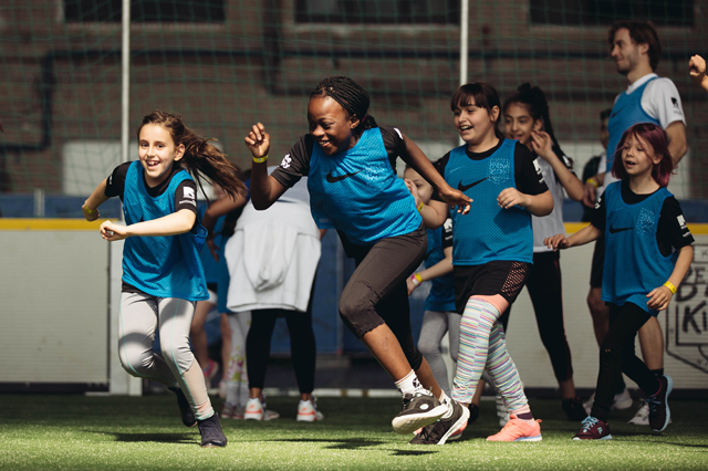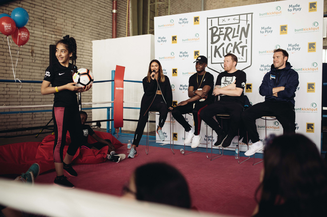 Im Rahmen des Programms BerlinKickt erlebten im April 150 fußballbegeisterte Kids zwischen 5-14 Jahren ein ganz besonderes Ereignis. Nike Global, buntkicktgut und der IRC schlossen sich zu BerlinKickt zusammen und luden die Kids zu einem besonderen Training im Hangar 1 des ehemaligen Flughafen Tempelhofs ein. Diese Fläche wurde uns von der gemeinnützigen Gesellschaft Tentaja zur Verfügung gestellt.